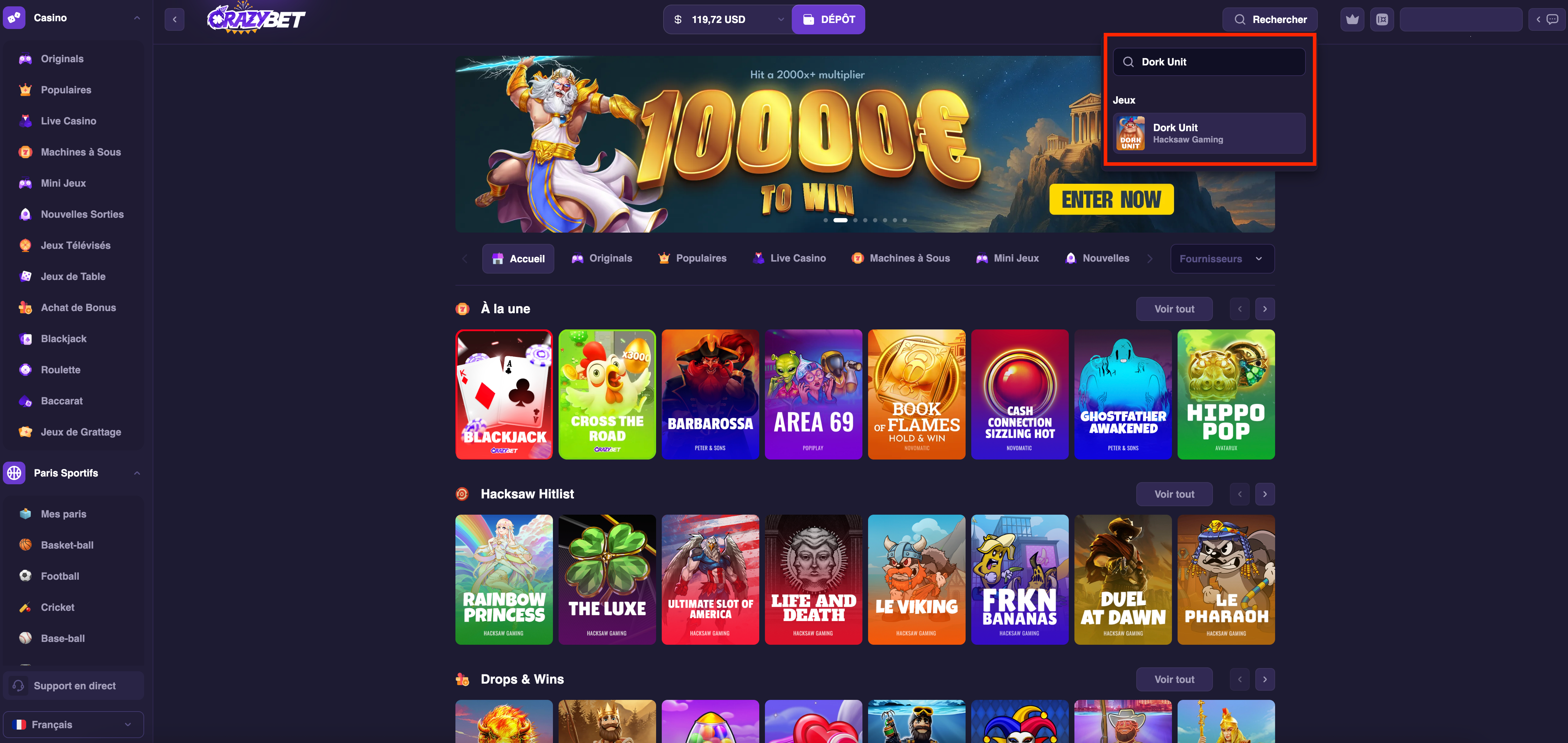 Dork Unit on CrazyBet – Finding the Hacksaw Gaming Game