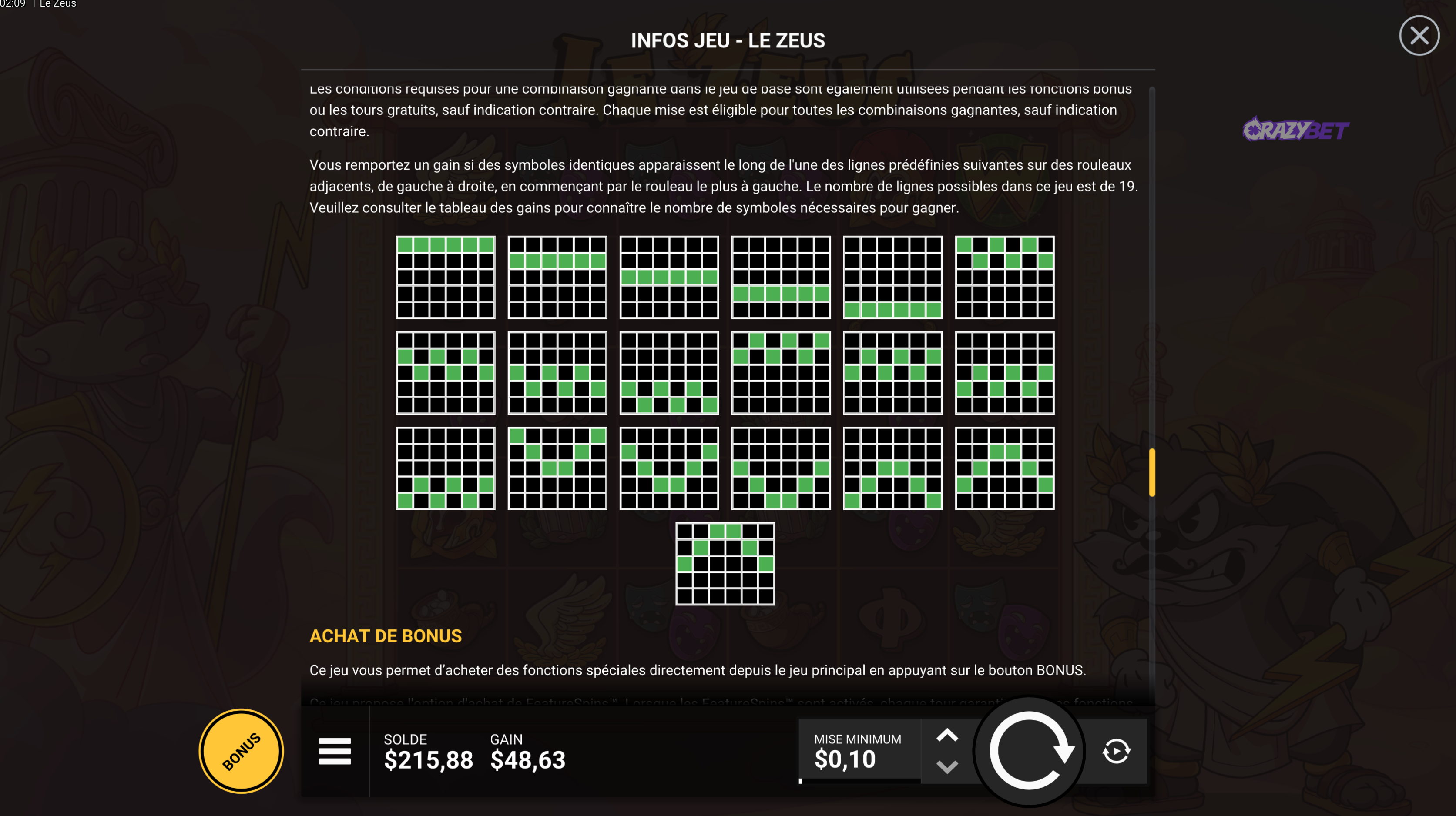 table-info-19-paylines-winning-configurations-le-zeus-hacksaw-gaming