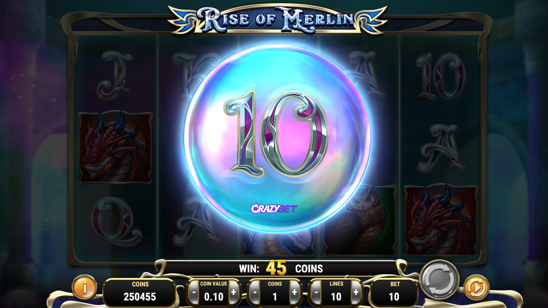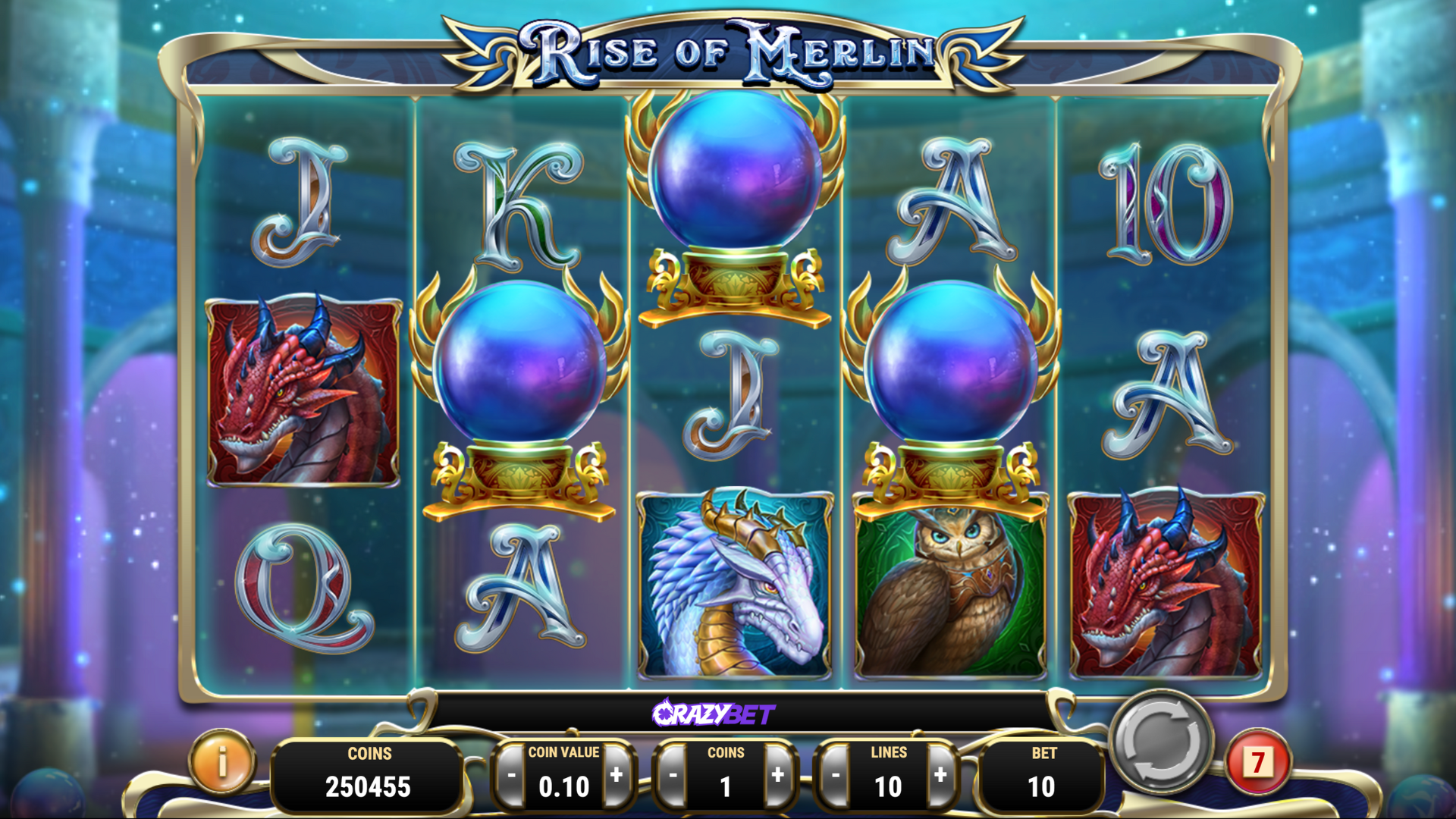 To play Rise of Merlin, we recommend CrazyBet, which offers the full RTP version at 96.58%.