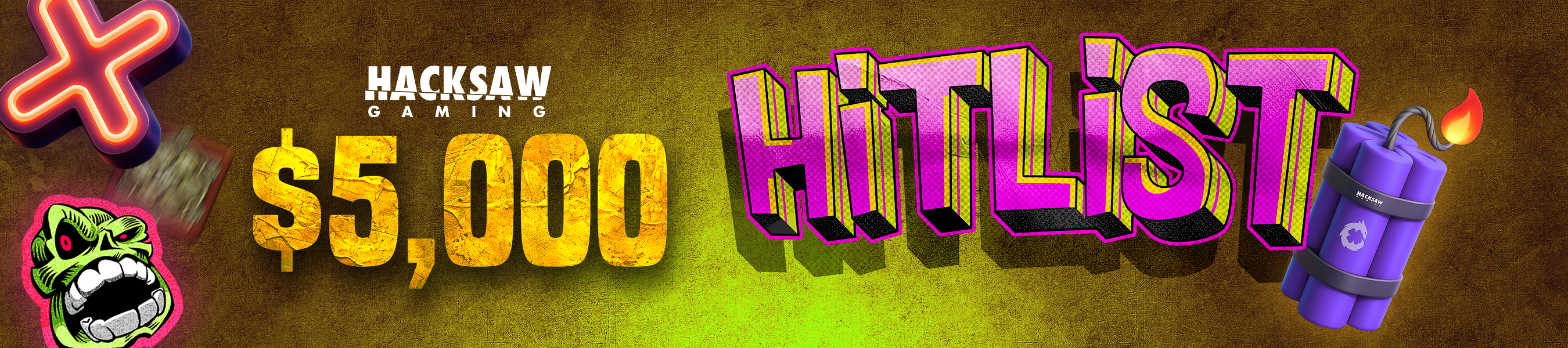 Play any game from the Hacksaw Hitlist category, rack up your wagers and climb the leaderboard for your share of €5,000 in cash prizes.