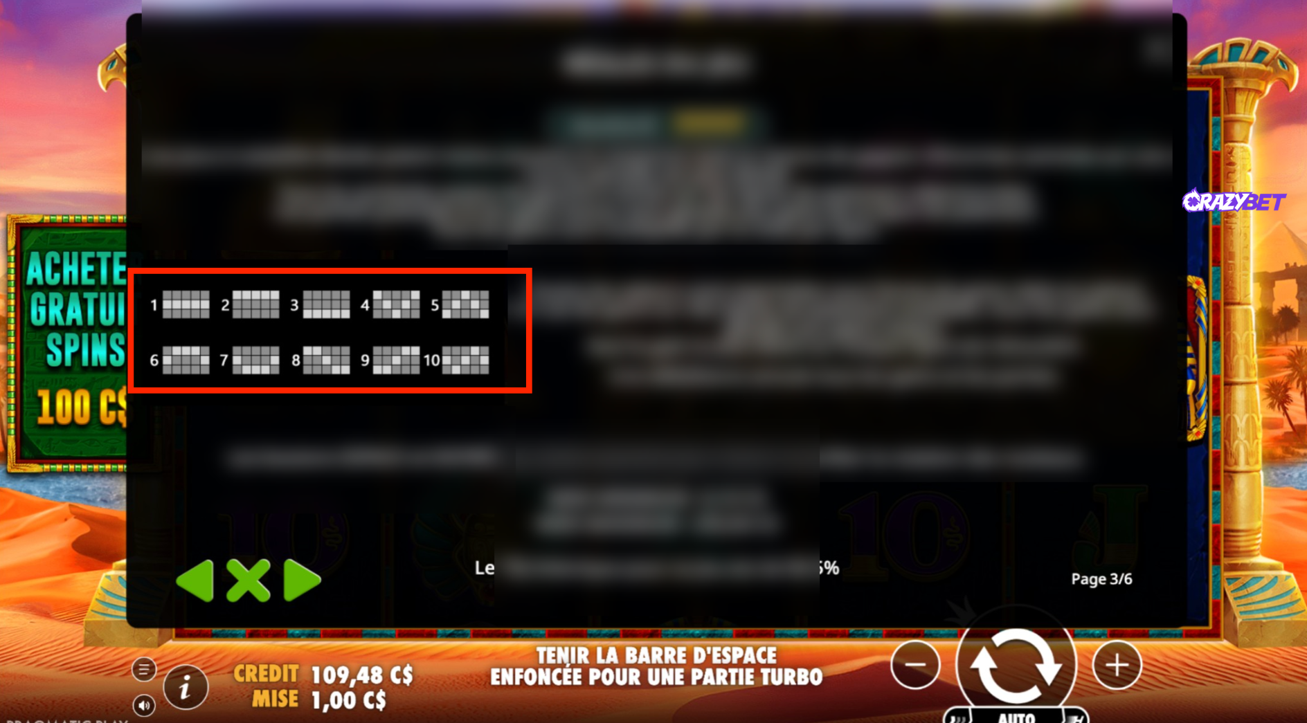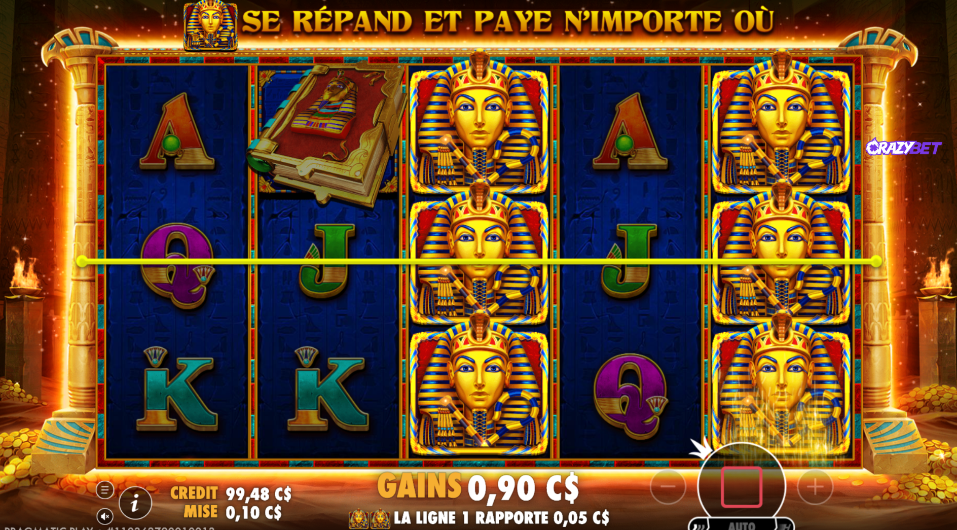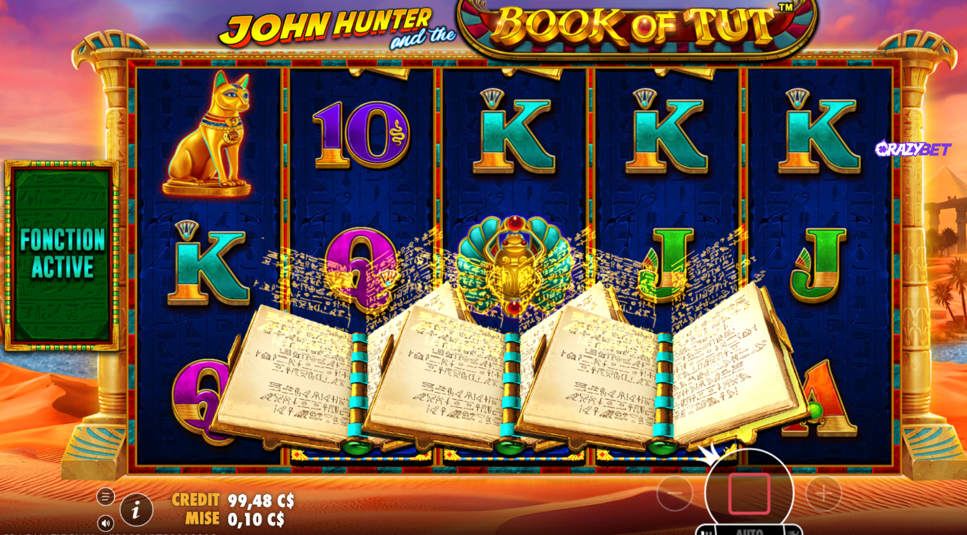 The slot adheres to a classic Ancient Egyptian theme. Utilising a traditional 5x3 grid, the engine provides 10 fixed paylines that evaluate wins strictly from left to right. Stakes are highly versatile, ranging from a minimum of $0.10 up to a substantial $250 (available exclusively at CrazyBet).