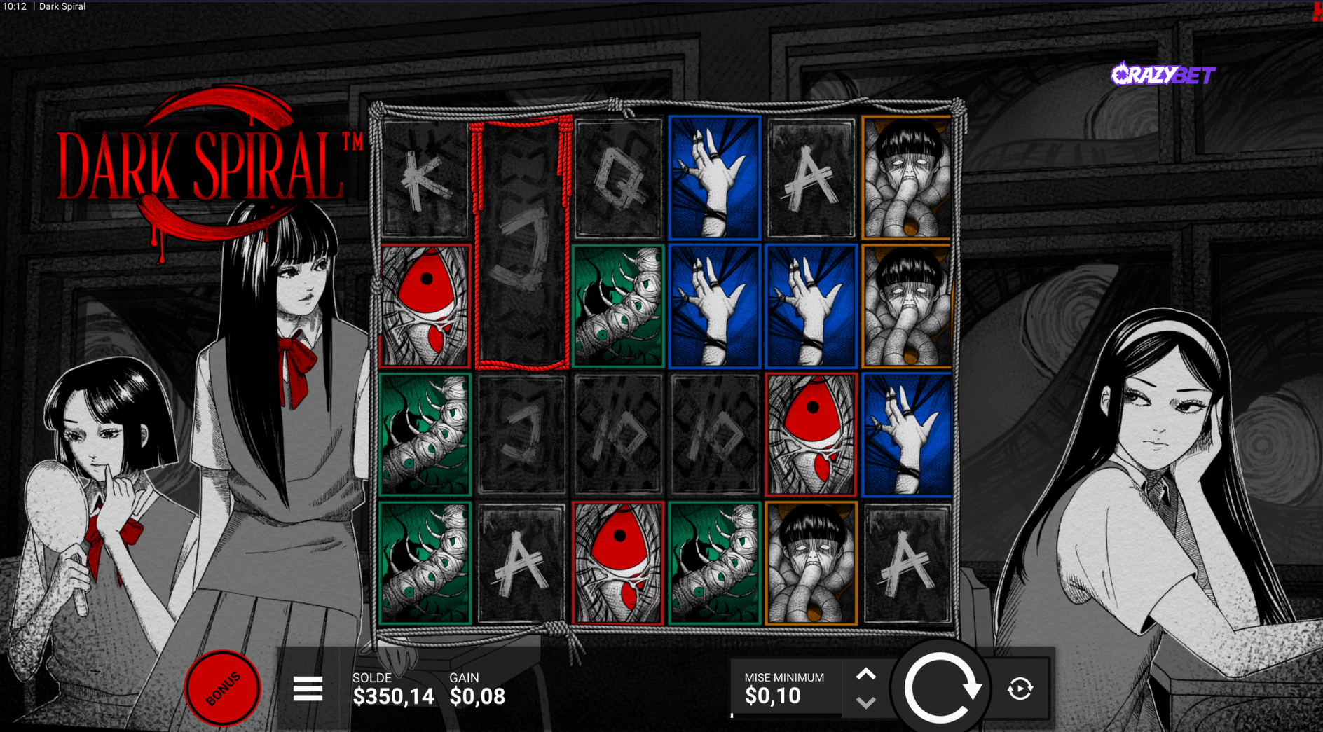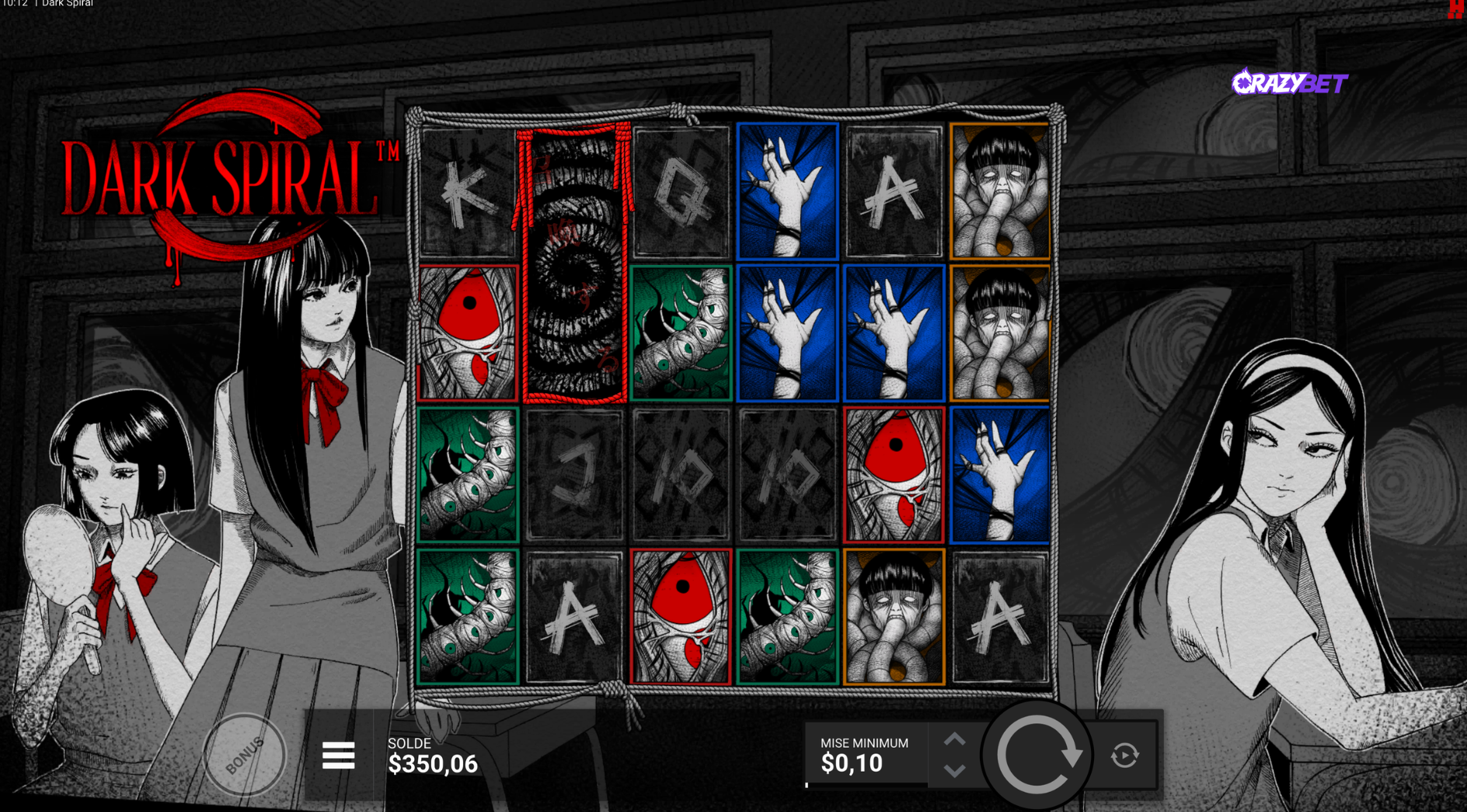 Dark Spiral doesn’t look like anything else in the Hacksaw Gaming catalogue. No bright colours. No cheeky mascot trying to soften the mood. Instead, the game throws you straight into psychological body horror, heavily inspired by the work of Junji Ito, the Japanese manga author behind Uzumaki and a true master of cosmic horror.