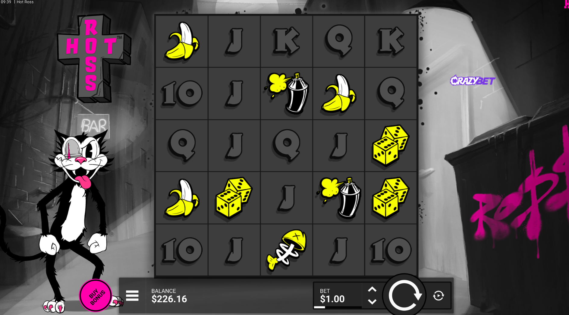 Hot Ro$$ interface showing urban symbols (dice, bomb, banana), $226.16 balance and the Buy Bonus button clearly visible.