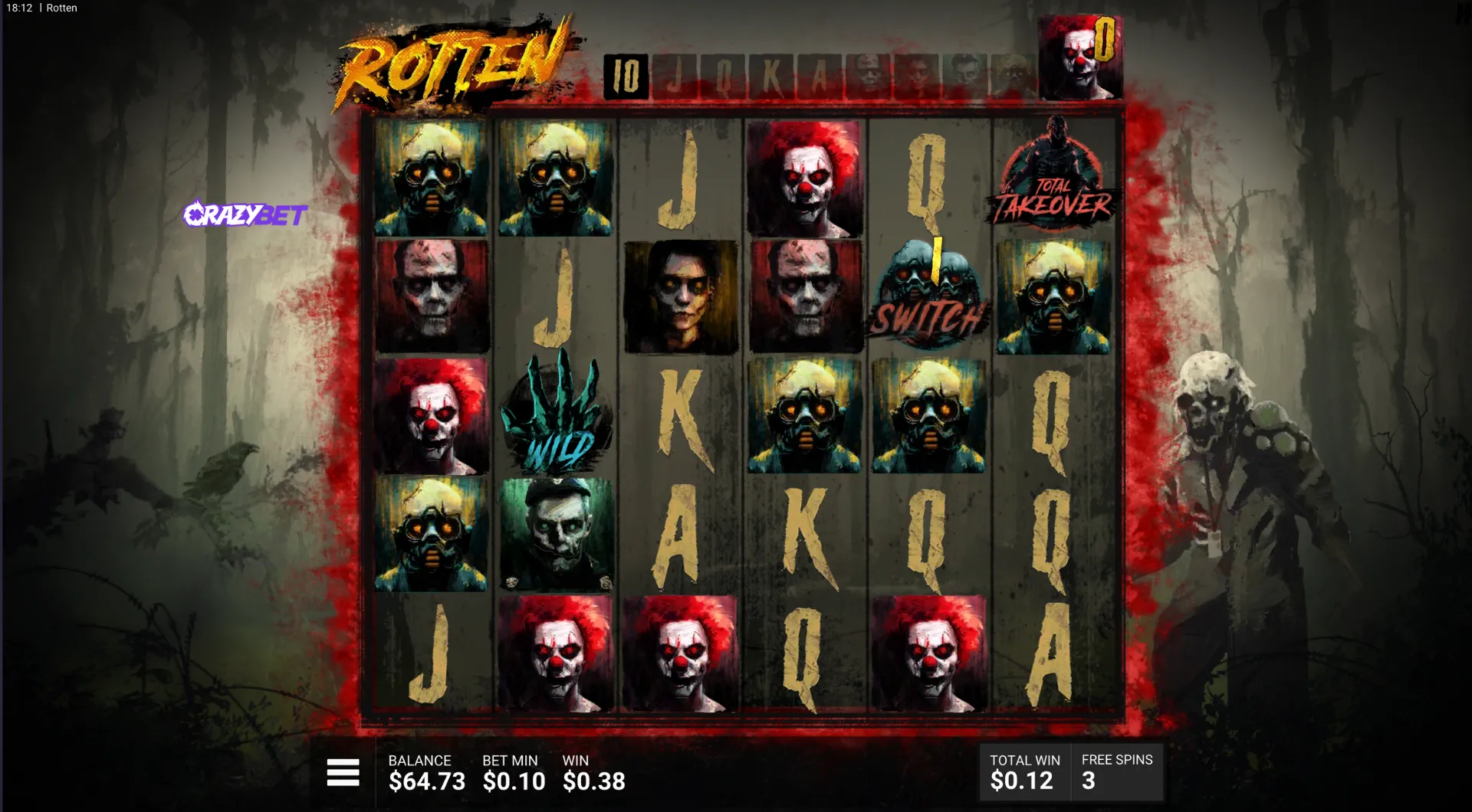 Super bonus Total Takeover: every Switch stacks without resetting, gradually creating a grid filled with upgraded symbols. Perfect for showcasing the highest win potential in Rotten by Hacksaw Gaming.