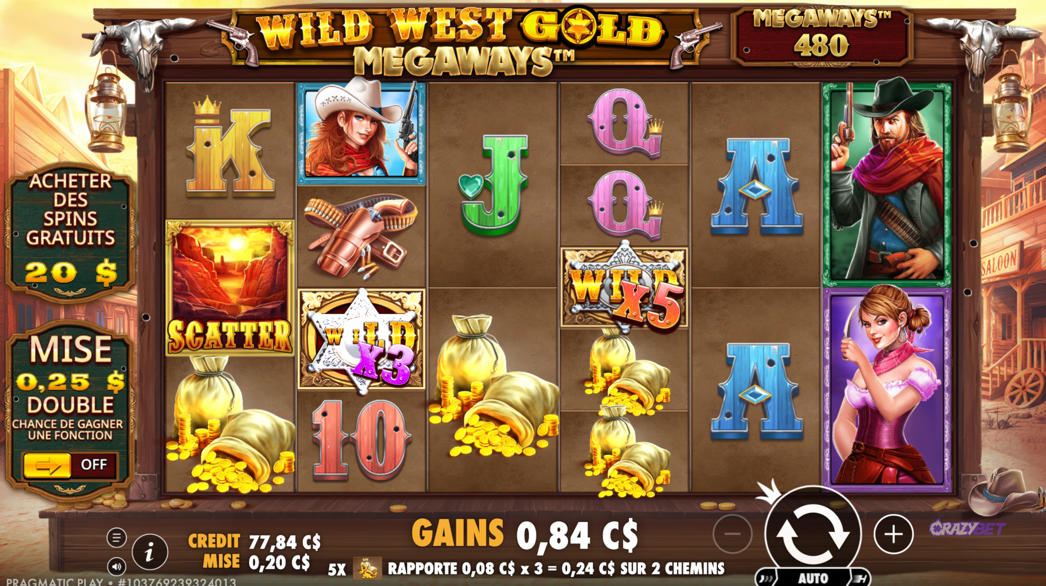 declenchement-bonus-3-scatters-wild-west-gold-megaways-pragmatic