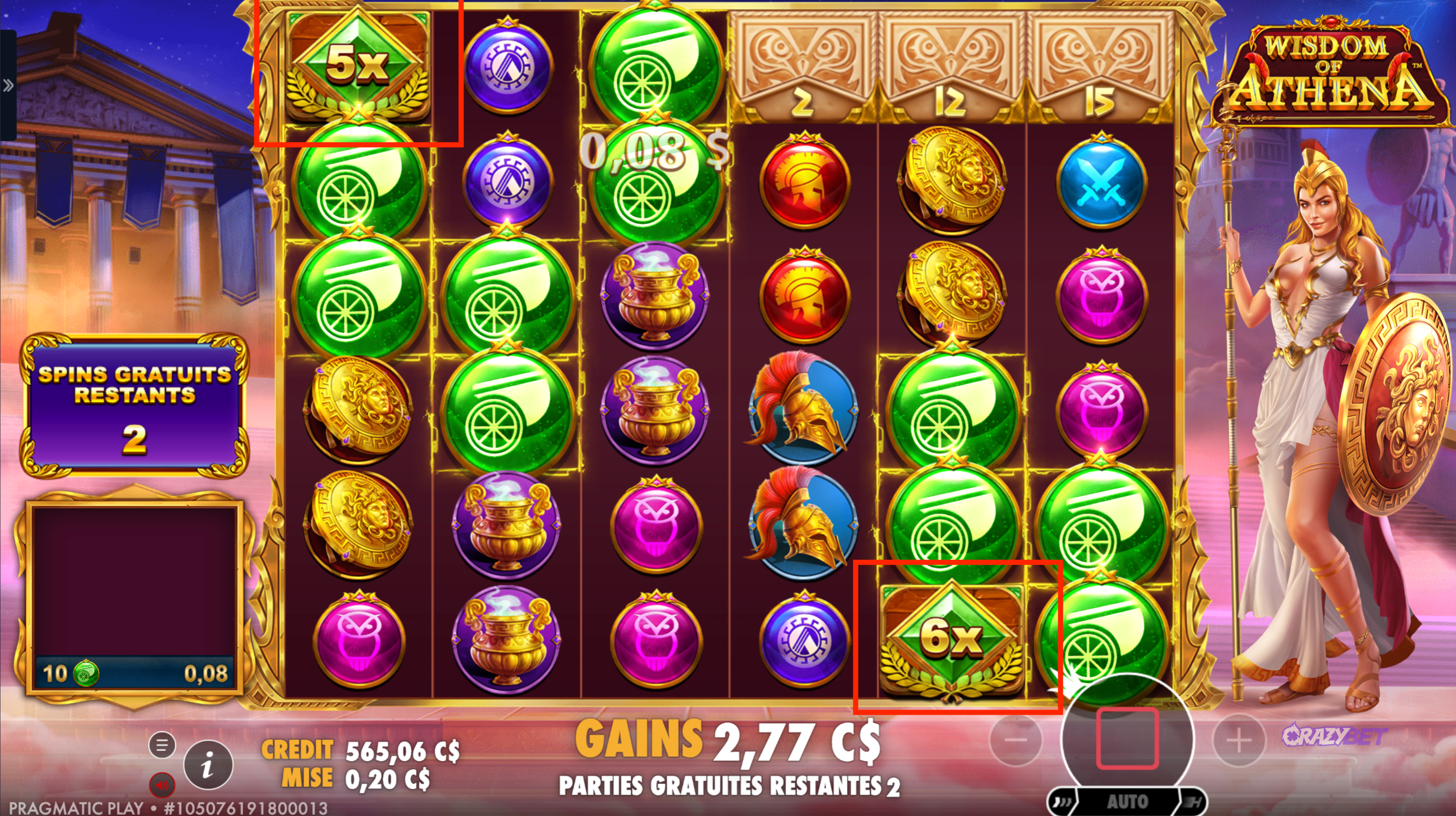 Another key point: during the bonus, multipliers in Wisdom of Athena become persistent as soon as they appear, whereas on Gates of Olympus they must be part of a winning connection to apply.